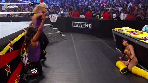JT: Also she got a big pop, as always, for doing her split on the apron. Even if in 2010 it’s not as overtly horny as it was back in 2007, it’s still just flat out impressive, and I’m happy that audiences were still living for it after the years. Again, she’s got a real star quality to her, and I think that’s why I was such a fan. Like no offense to any of the ladies we’ve seen on the timeline so far, but I think she’s the only one who has felt like a big deal.