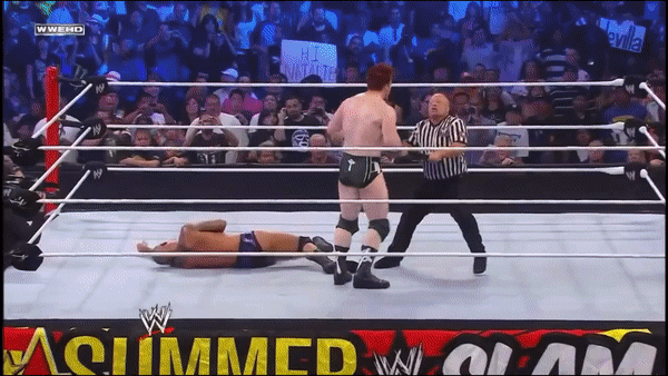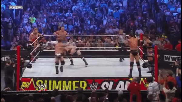 JT: Now in the match, the Nexus are all huddled together, clearly not expecting what has happened. They need to set things straight, and Wade Barrett has gotten Skip Sheffield all hyped up to come in to fix the problem. He comes in and throws Morrison back, then he throws him down, but Morrison slaps him. He’s not gonna take shit from The Nexus anymore! But Sheffield shows his strength as he hits a Powerslam on JoMo. Sheffield did his job and has shifted the momentum, as Truth & Hart try to rally the fans from the apron. The crowd wants Bret in, but Skip doesn’t give them what they want. Stryker on commentary says “For the first time ever 7 new comers main eventing Summerslam, when we look back in history, we will see the legacy these 7 nexus members leave on WWE” thanks for the tagline for this season pal. No royalties coming your way though. He also says a win tonight will cement their (Nexus’s) legacy. Morrison starts to fire up, but he hits the ropes and gets a kick to the back of the head by Gabriel! This stuns him and leaves him open as Sheffield runs him over with a Clothesline!! 1—2—3!! Truth wastes no time coming in, but he misses the Scissors Kick, and eats a big Clothesline too!! 1—2—3!! It’s all even again!! Sheffield impressing tonight!! Two of the meanest Clotheslines since Bradshaw retired the year before, and now the momentum is totally in favor of Nexus.