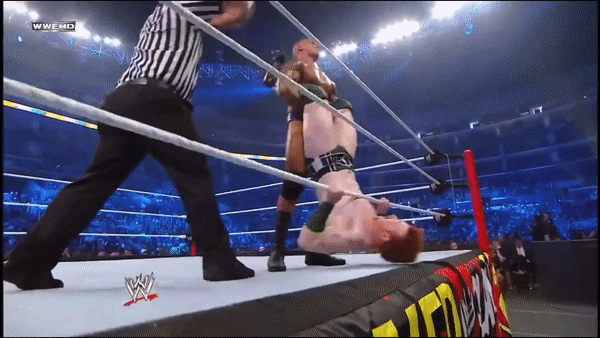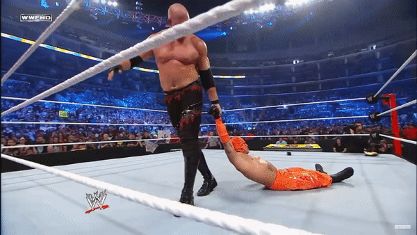 S: Oh for sure, like that must fucking suck to do, I’d include when Rey Mysterio would get chucked out of the ring, sliding under the ropes on his belly in that category as well but he does it so often that he must have mastered it by now.