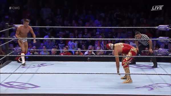 JT: But of course, we’ll get to that once we end the show! So for now, let me round up our introduction. So we get a dramatic presentation of the story’s far. CWC, sown from the seed of the underground, forged in unrivaled determination, defined by courage, heartbreak, triumph. This is a special live 2 hour broadcast! Our finalists get their words recapped: Ibushi wants to make people happy, Sabre will see the rewards for his hard work, Metalik will win for Mexico, TJP is gonna have his name on the list when people trace back to this point in time. 4 competitors, 4 nations, one prize! This is of course all played over slow motion footage of past matches under the triple h narration. CWC chants as the show begins, Mauro says this amazing tournament comes to an epic end. Mauro & Bryan talk about Tiger Mask vs Dynamite Kid and the Super J Cup. Bryan mentions Gargano/Ciampa, Please Sign Cedric, and Kendrick’s goodbye as special moments to define this tournament. More promos from our finalists too! TJ says it’s huge to be part of the CWC, because it’s a generational shift, people will look back at this as something that set the tone for future generations Sabre says this is a chance to show the diversity of Cruiserweights, while Metalik says it’s a great showcase for the worldwide styles and Ibushi says it feels like a World Cup, and he’s just been focusing on the opponent’s in front of them. Metalik is prepared to give his all to win, Sabre says he’s not going home without this trophy, Ibushi has no doubt that he’s gonna win, and for TJ, getting this far is validating, and it’s motivating to be so close to winning. It’s a bit more introduction than usual, but it’s a 2 Hour Show! That’s a whole hour longer! We gotta cut them so slack! They want to make tonight feel like a big deal. And I know it definitely felt like one for me back in 2016.