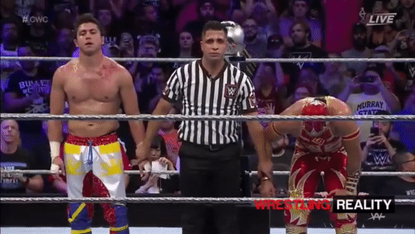 JT: That’s an interesting way of putting things. You’re right though, Sabre now has someone stylistically different from him. It can either really go to his advantage, because he should theoretically dominate the submission game, or he’s going to be unable to keep up with the speed and energy of Metalik. As they pass by the Cruiserweight Classic Trophy on the ramp, there’s only one way to find out how this match turns out. We gotta break it down.