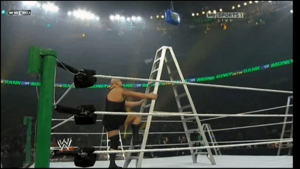 S: I’ve grown to just be sick of the old “6 or 7 or 8 people reaching for the briefcase at the same time” trope. There’s only so many times where you can do that and get an “awh class, that looks cool” reaction from me. I always hate when people position the ladder away from where the briefcase is, that’s another one which annoys me. The final one would be where wrestlers climb two rungs of the ladder, then reach, another one or two rungs, reach again until they are inevitably pushed off. It’s those small wee tropes which I’ve grown tired of.