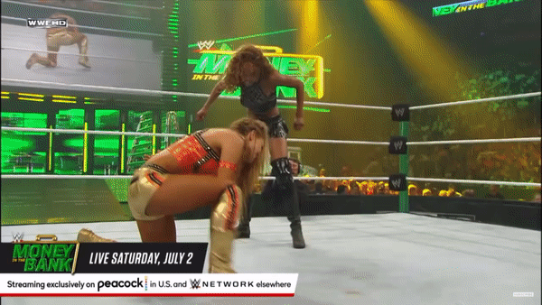 S: An instantly memorable MITB spot, it looked really fucking good. The camera angle was perfect as it got across the height which Kofi was doing the Boom Drop from and then even more considering it was shot by looking up at him. This is one of those spots which WWE would use for MITB video packages for years to come and will probably be used for Kofi’s Hall of Fame video package in the future because its that memorable and looked great.