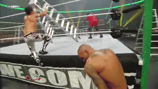 JT: That was the only time that worked. Or the time Jeff Hardy kicked the door out from under Johnny Nitro and crotched him on the door. Only times it has ever felt satisfying.